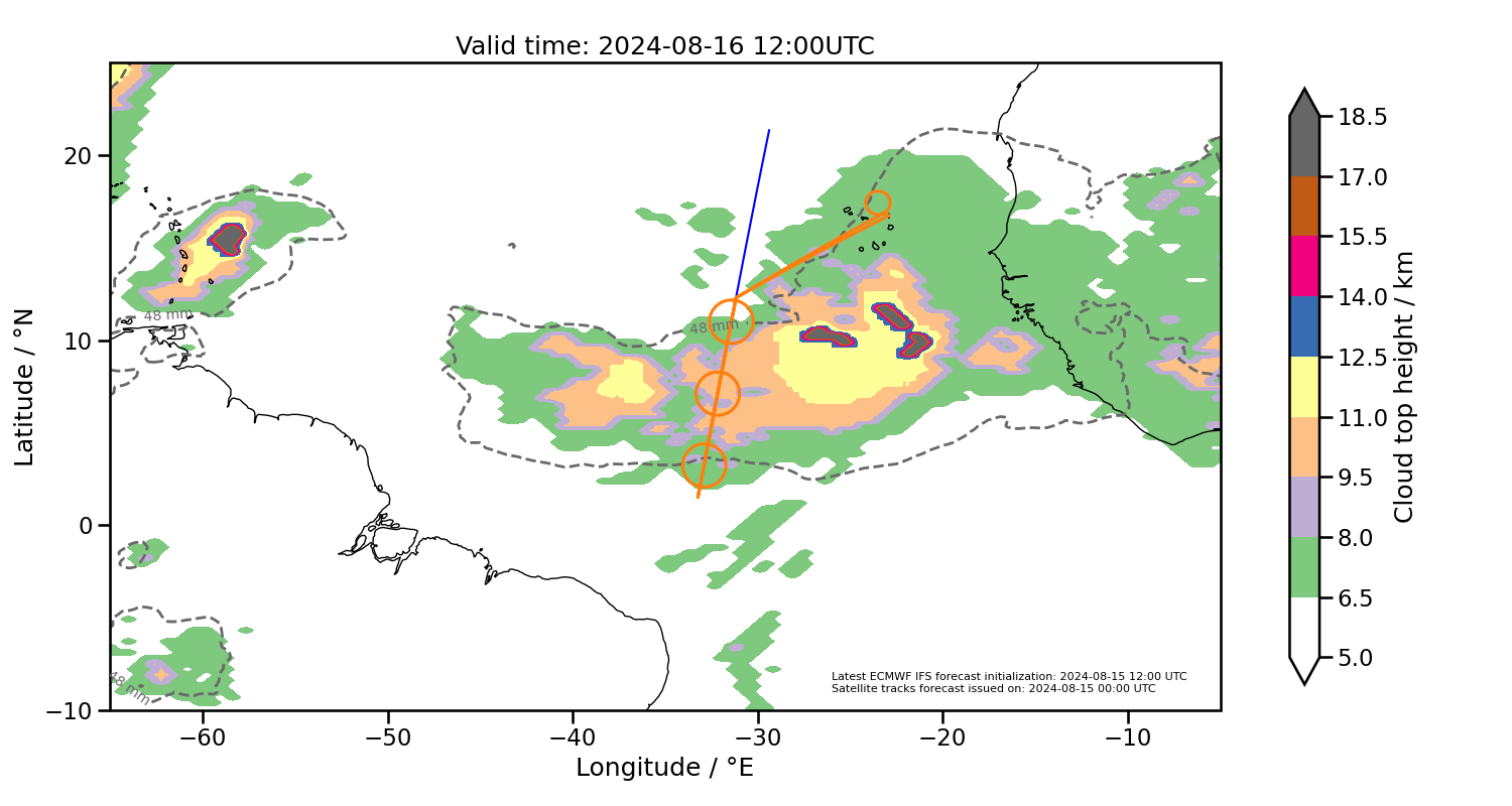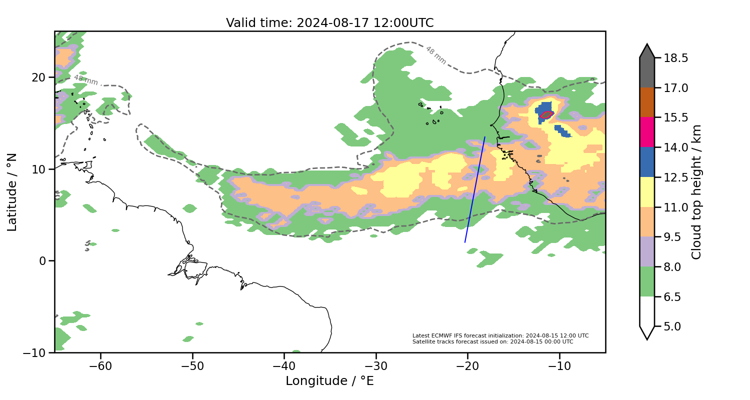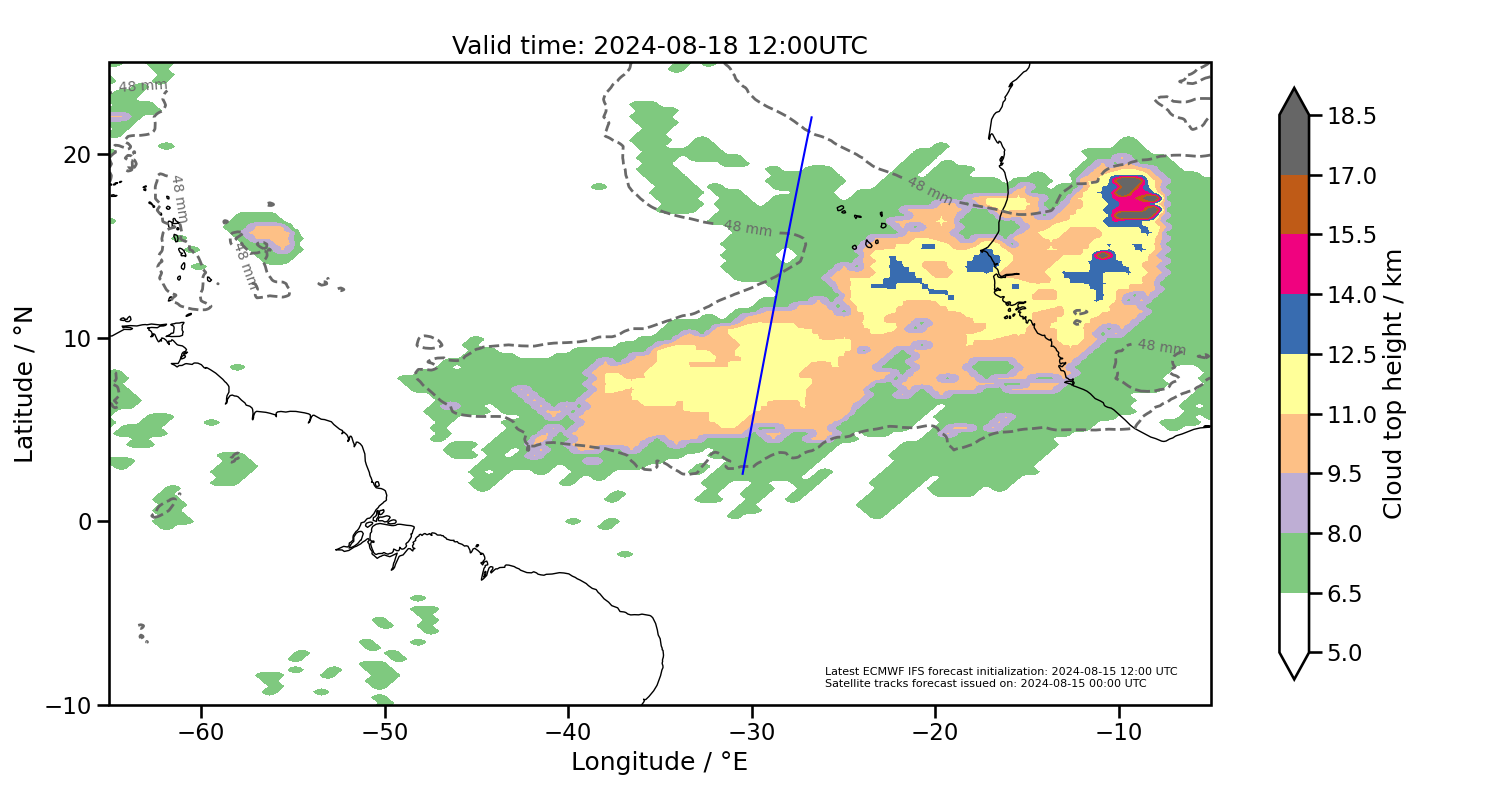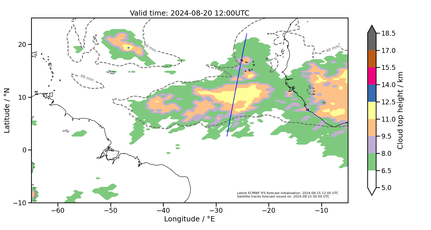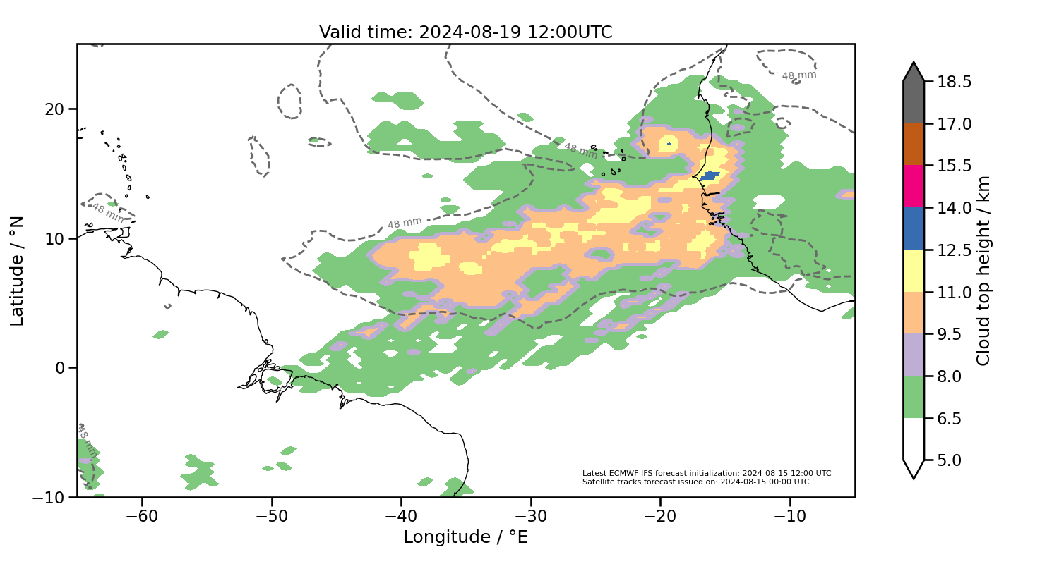 Pronounced deep convection expected with cloud top heights up to 12.5 km