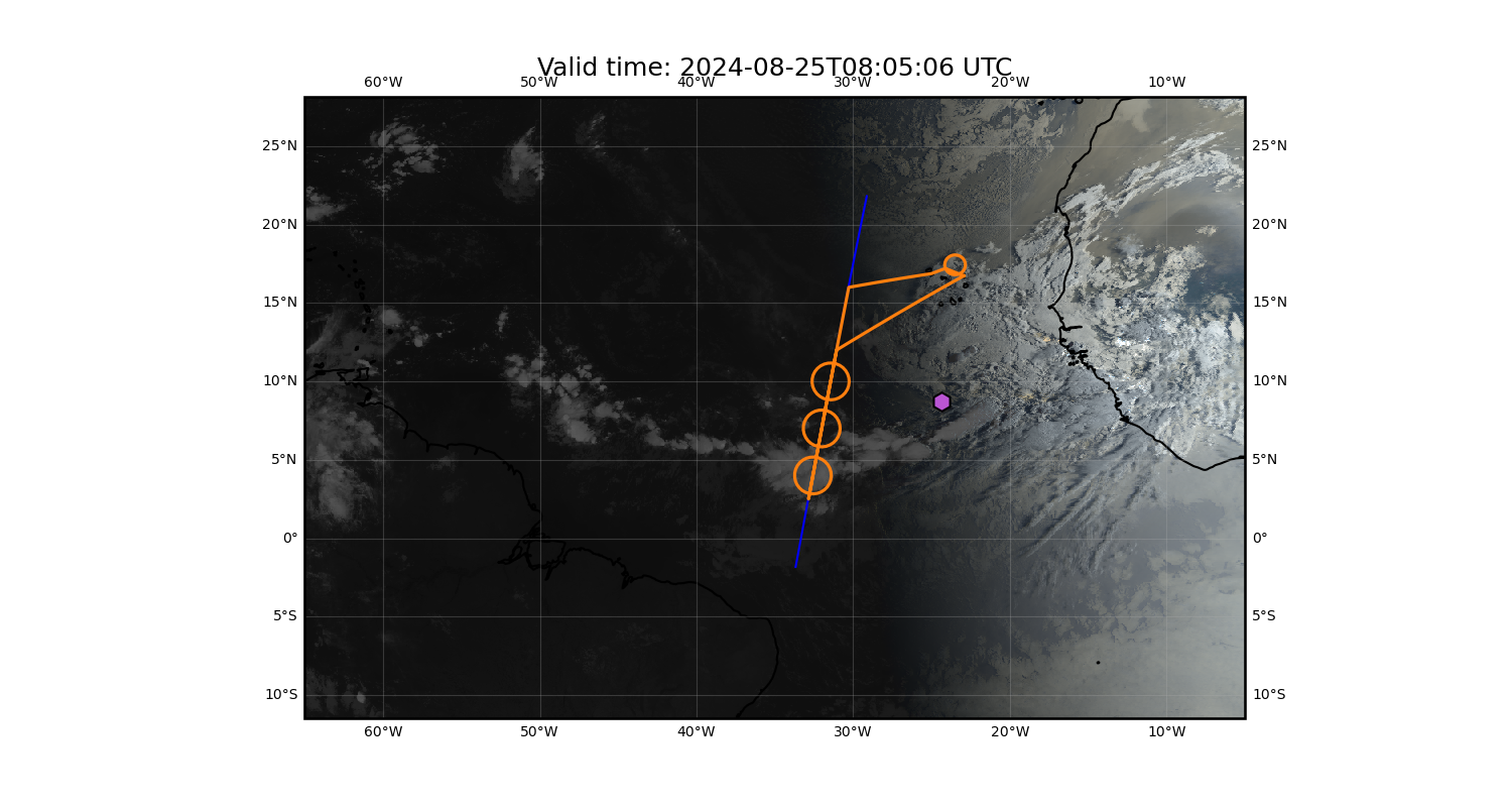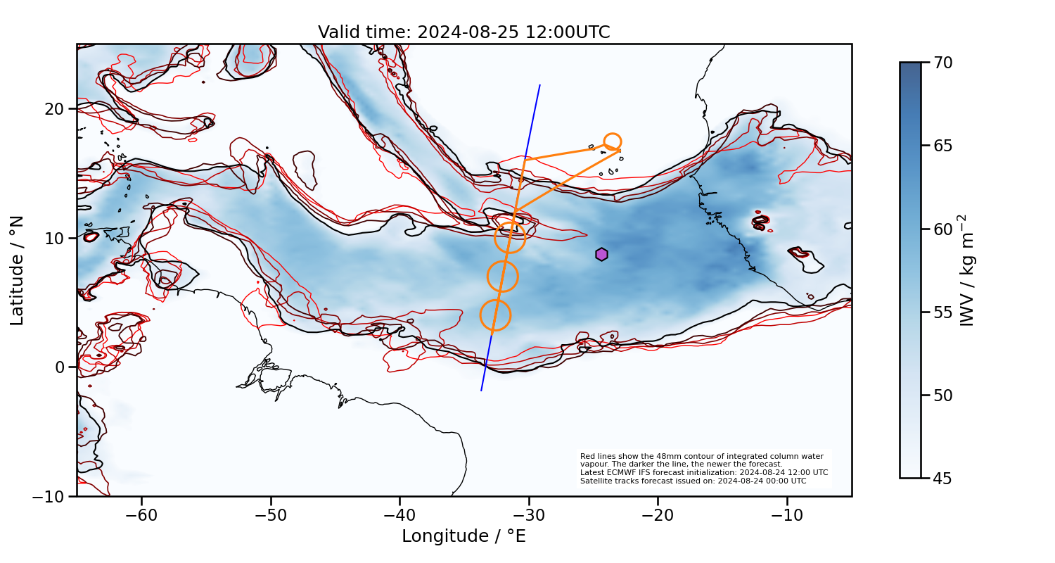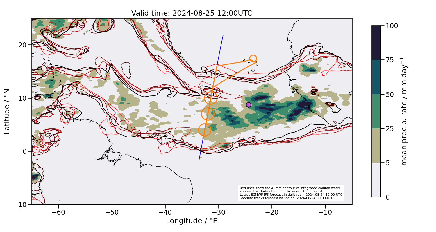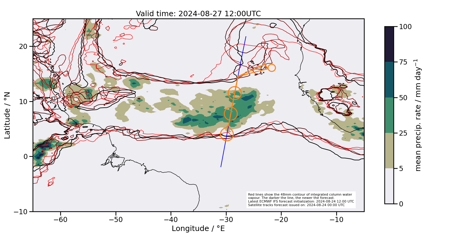 Southern margin too far north, but currently in the deepest convection based on latest satellite images