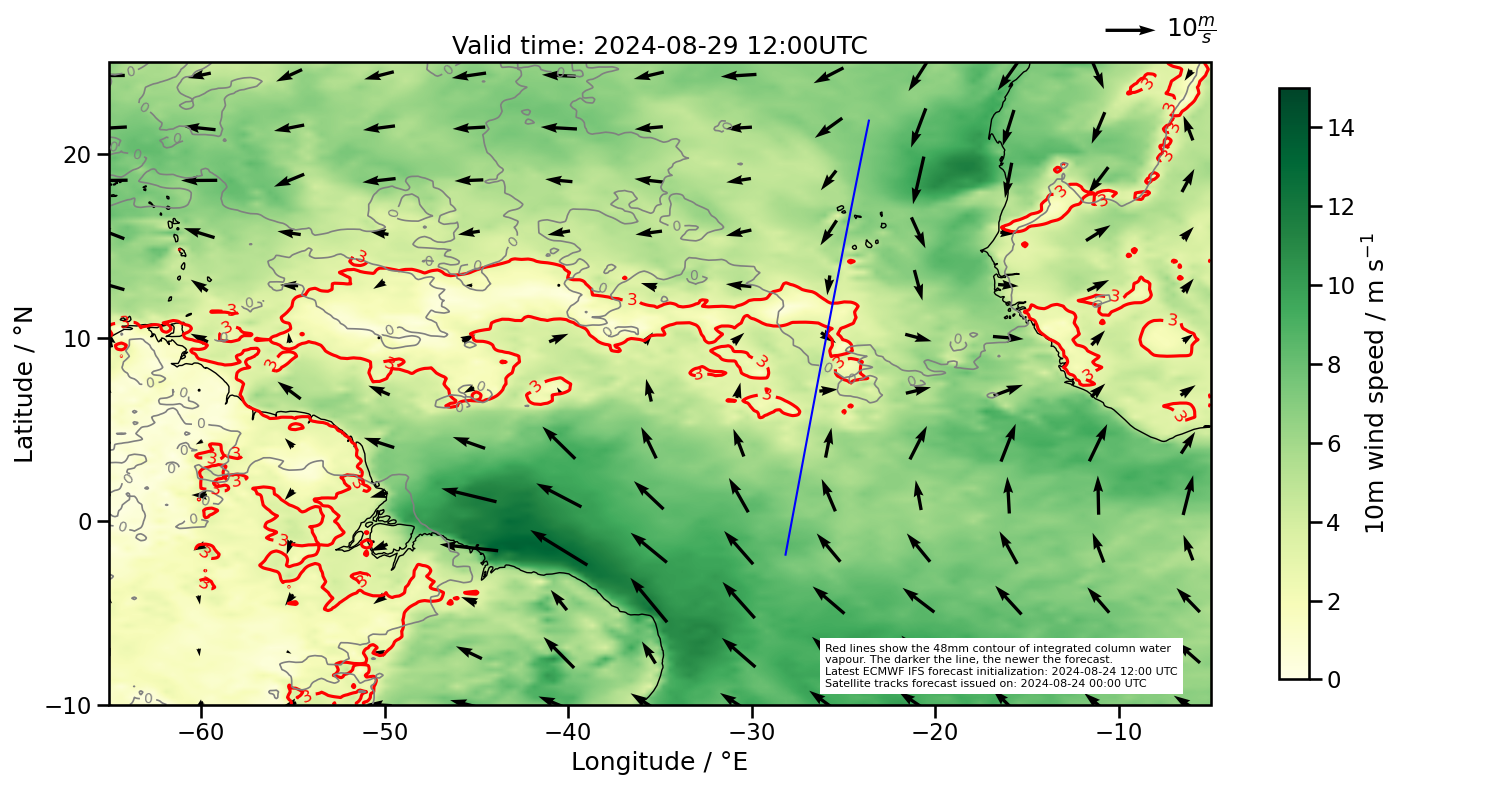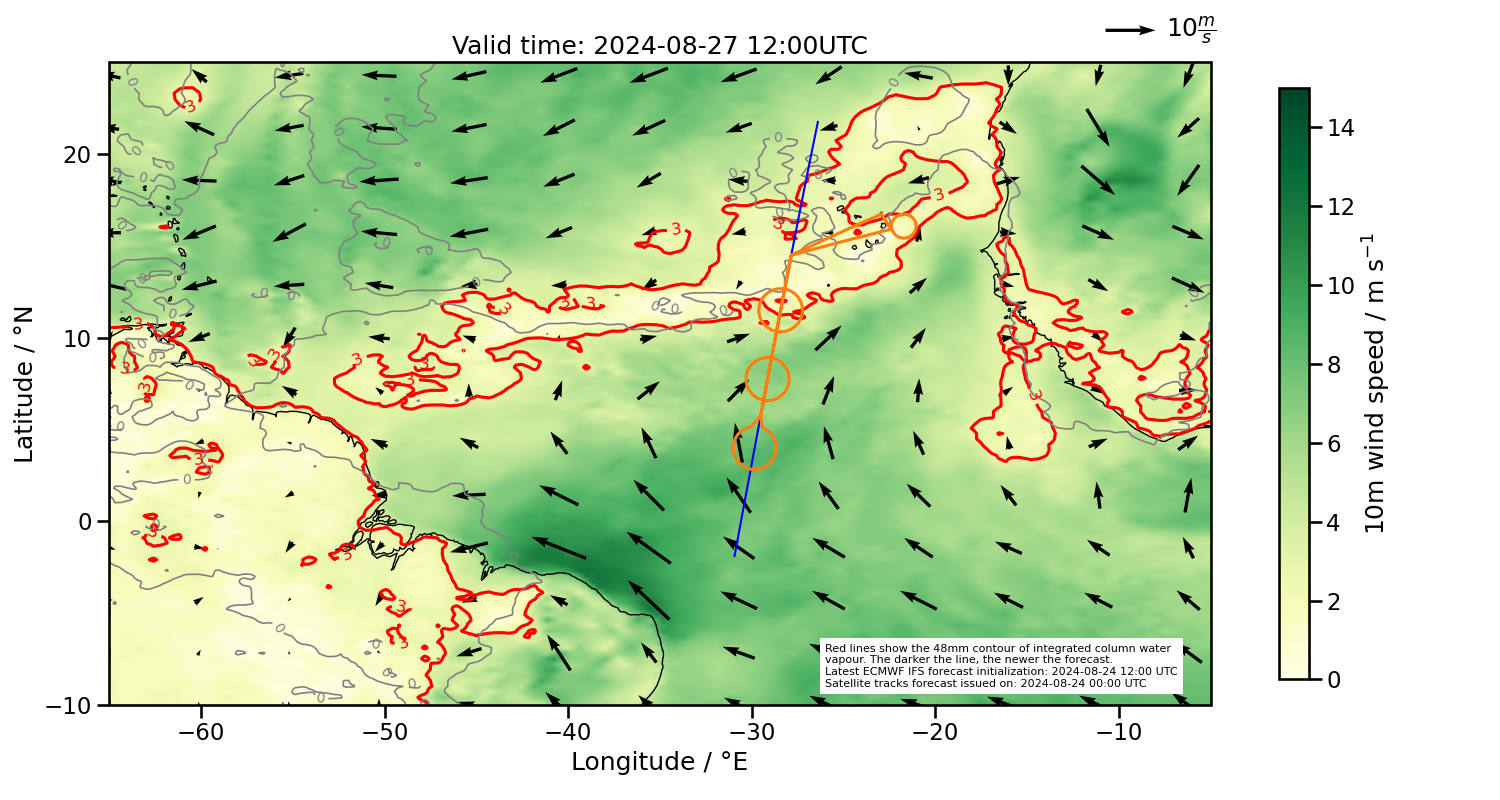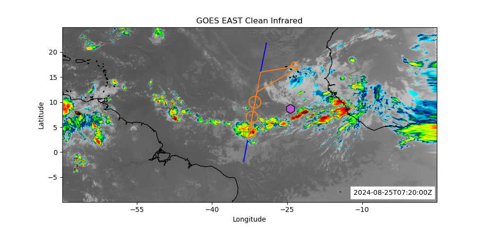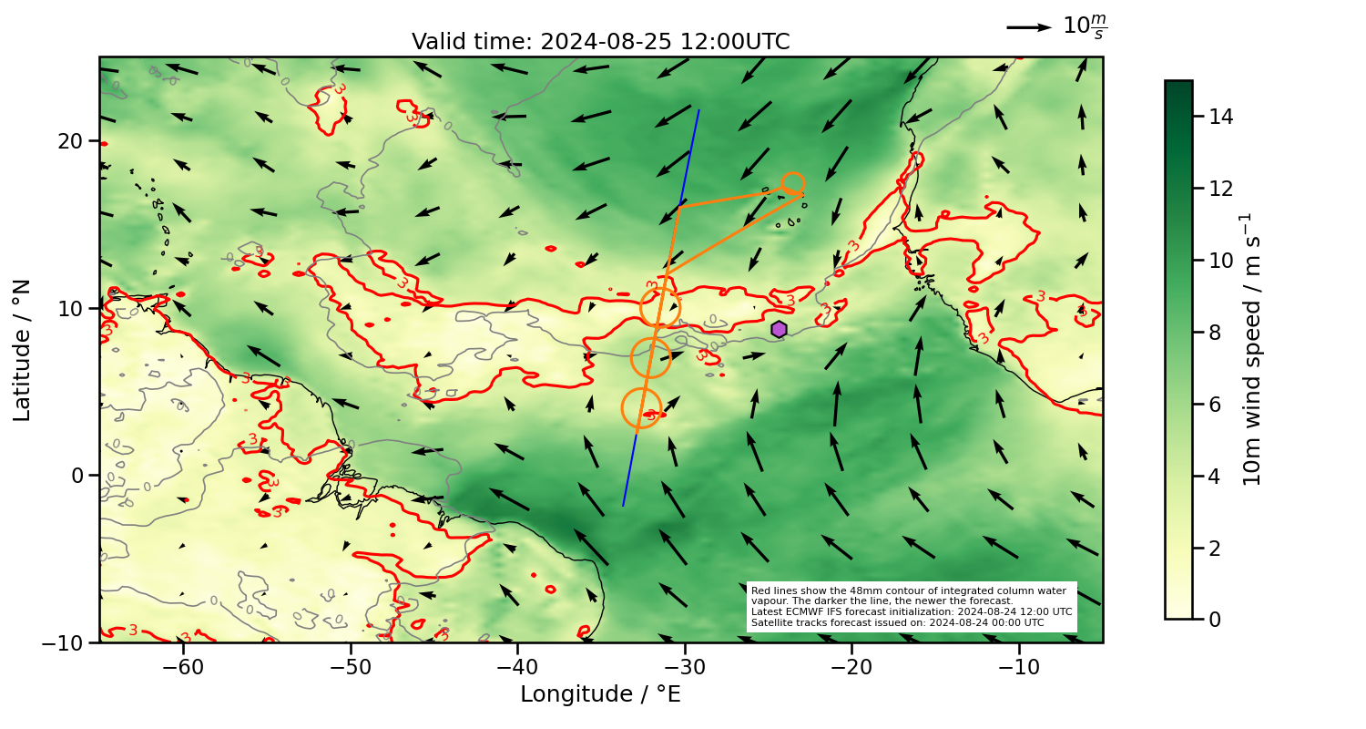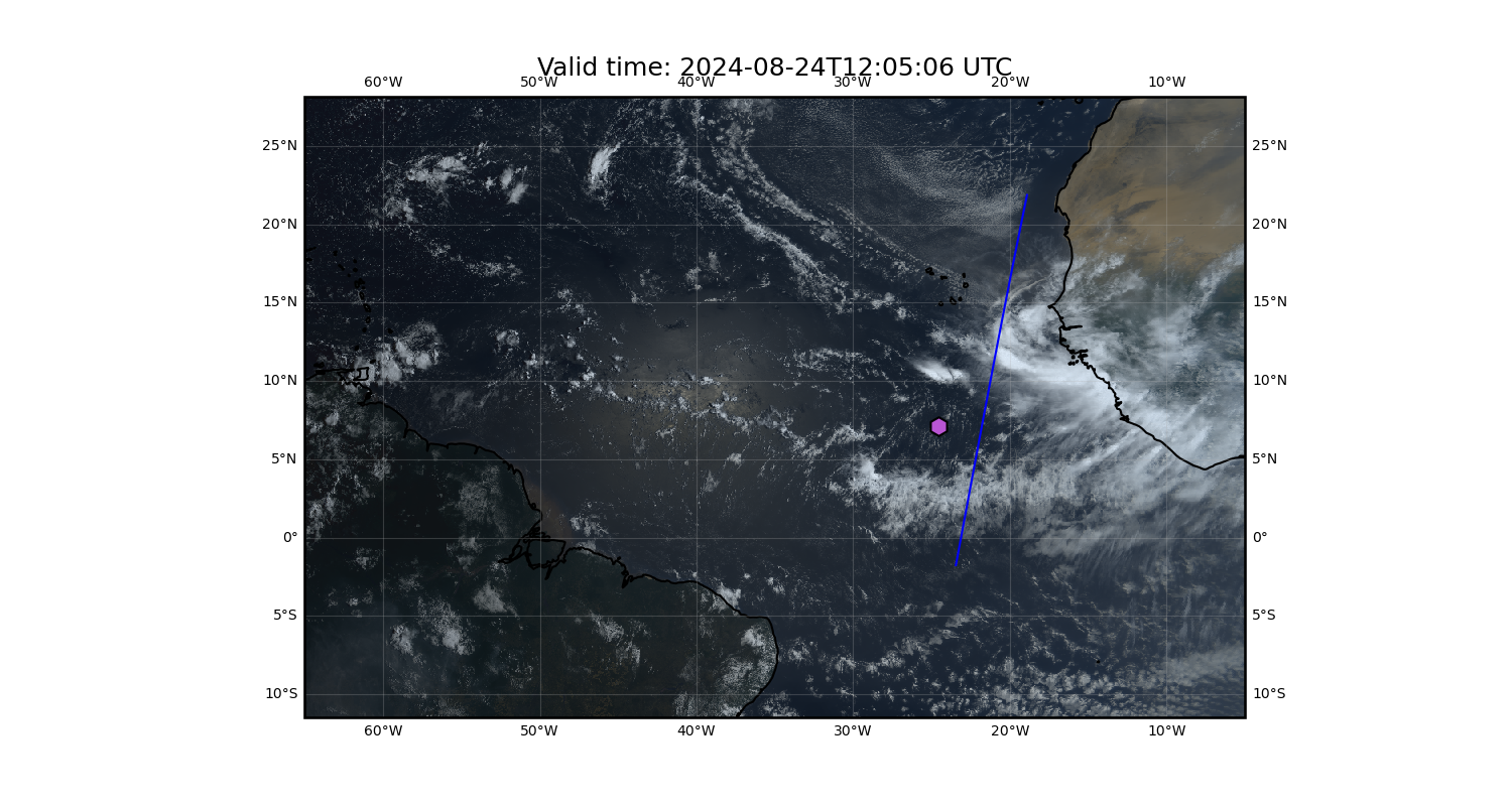 Southern margin too far north, but currently in the deepest convection based on latest satellite images