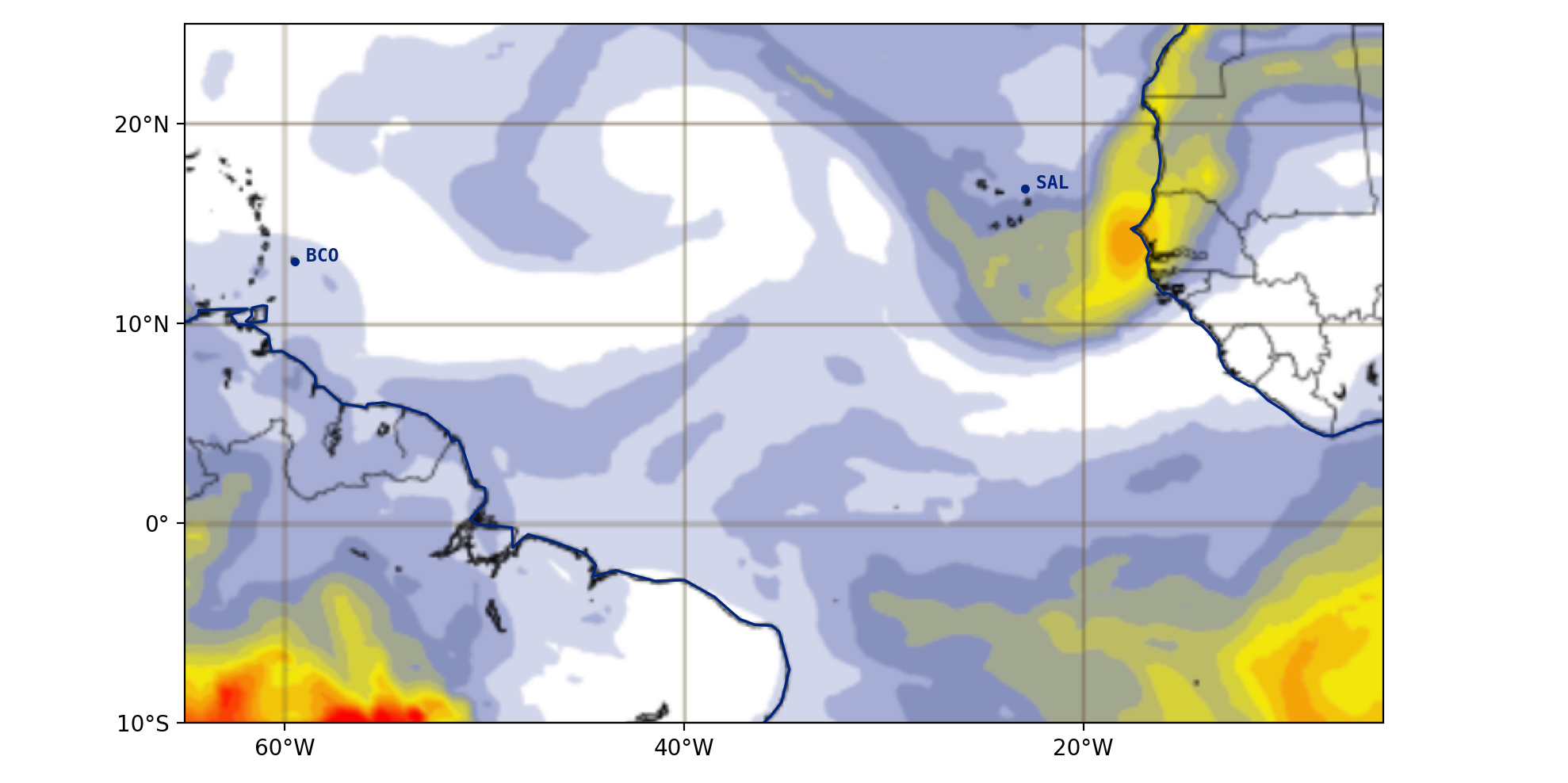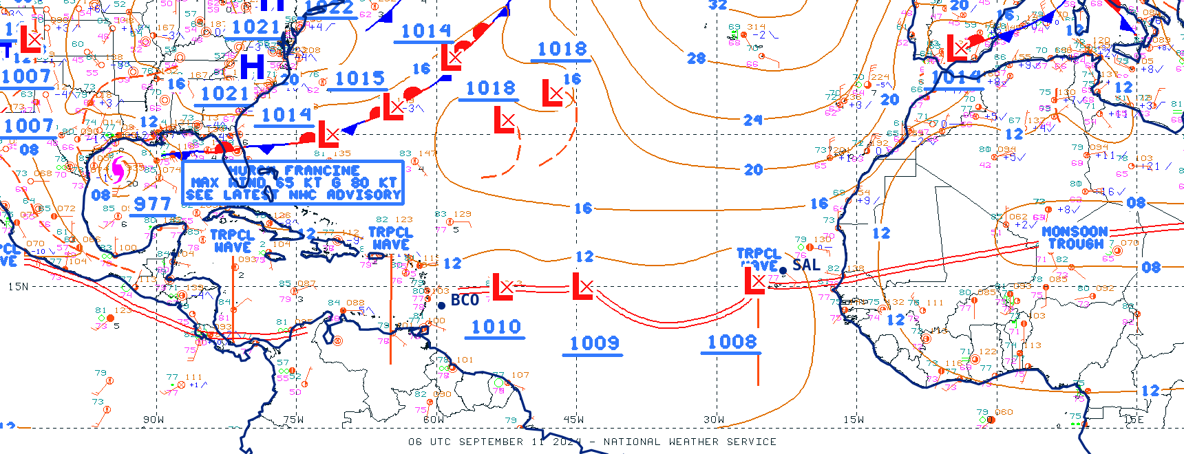 position of northern edge of the ITCZ uncertain due to incoming tropical wave