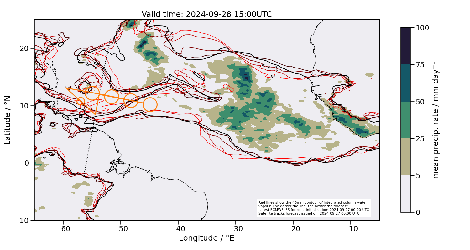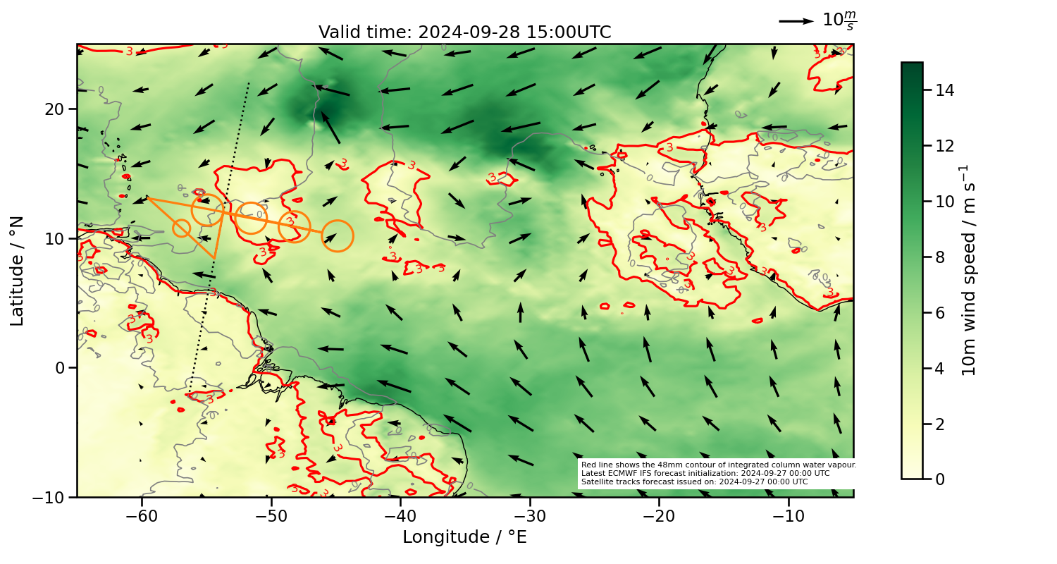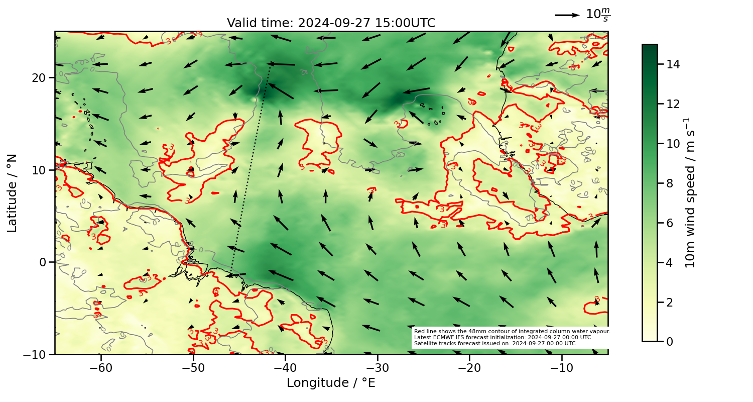 Horizontal sfc. wind conv. & Prob. precip. forecast