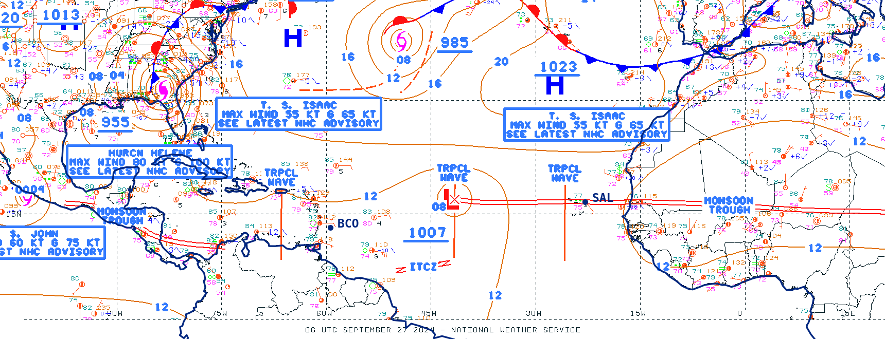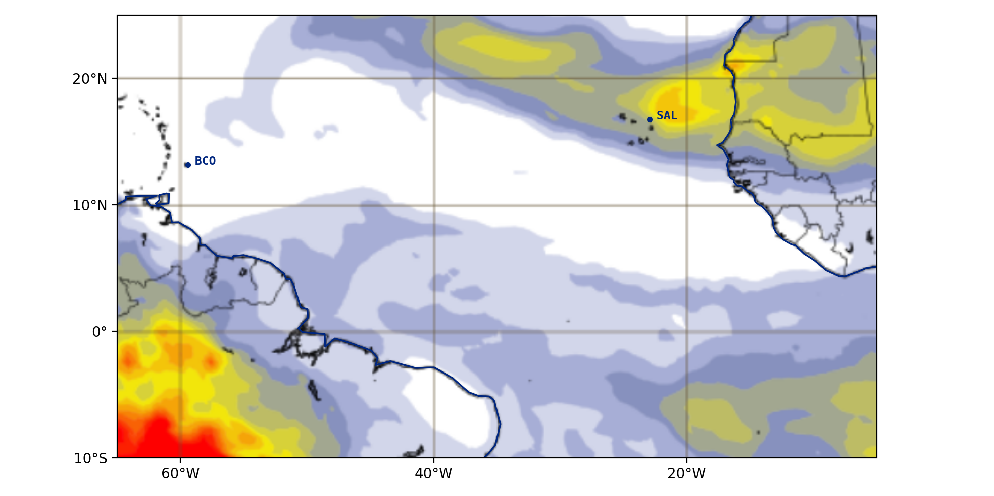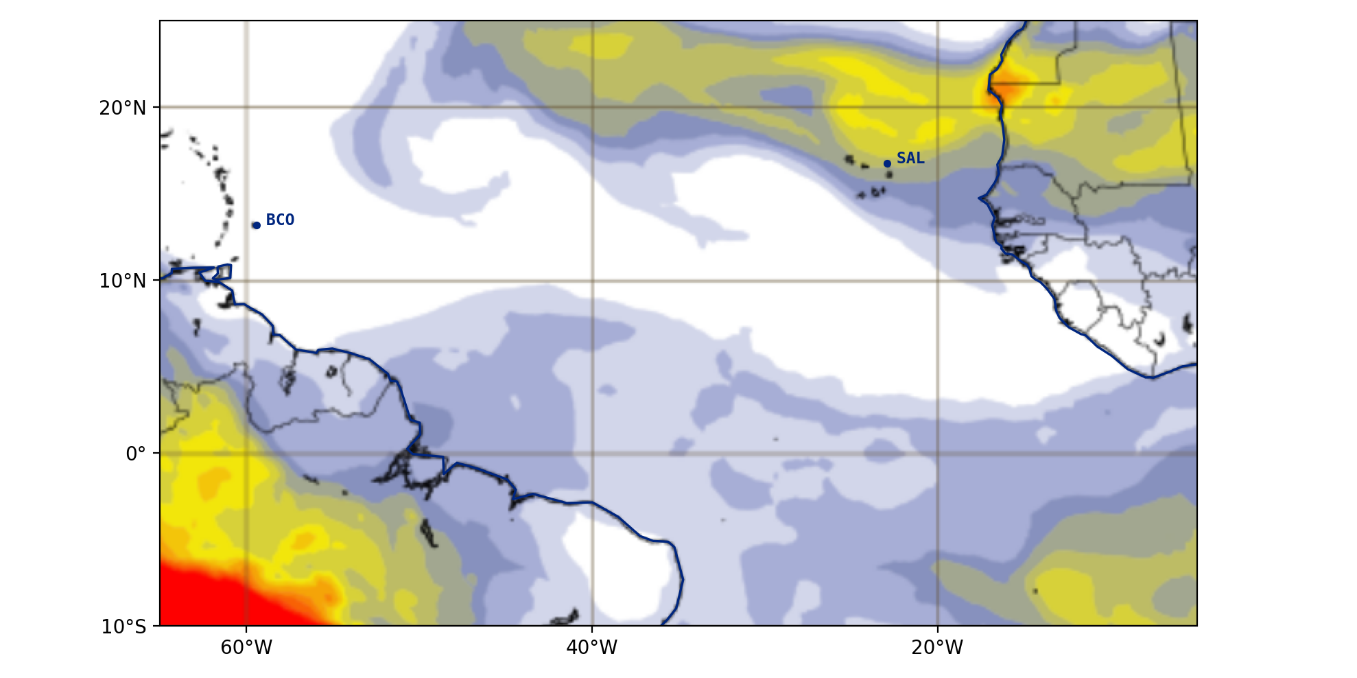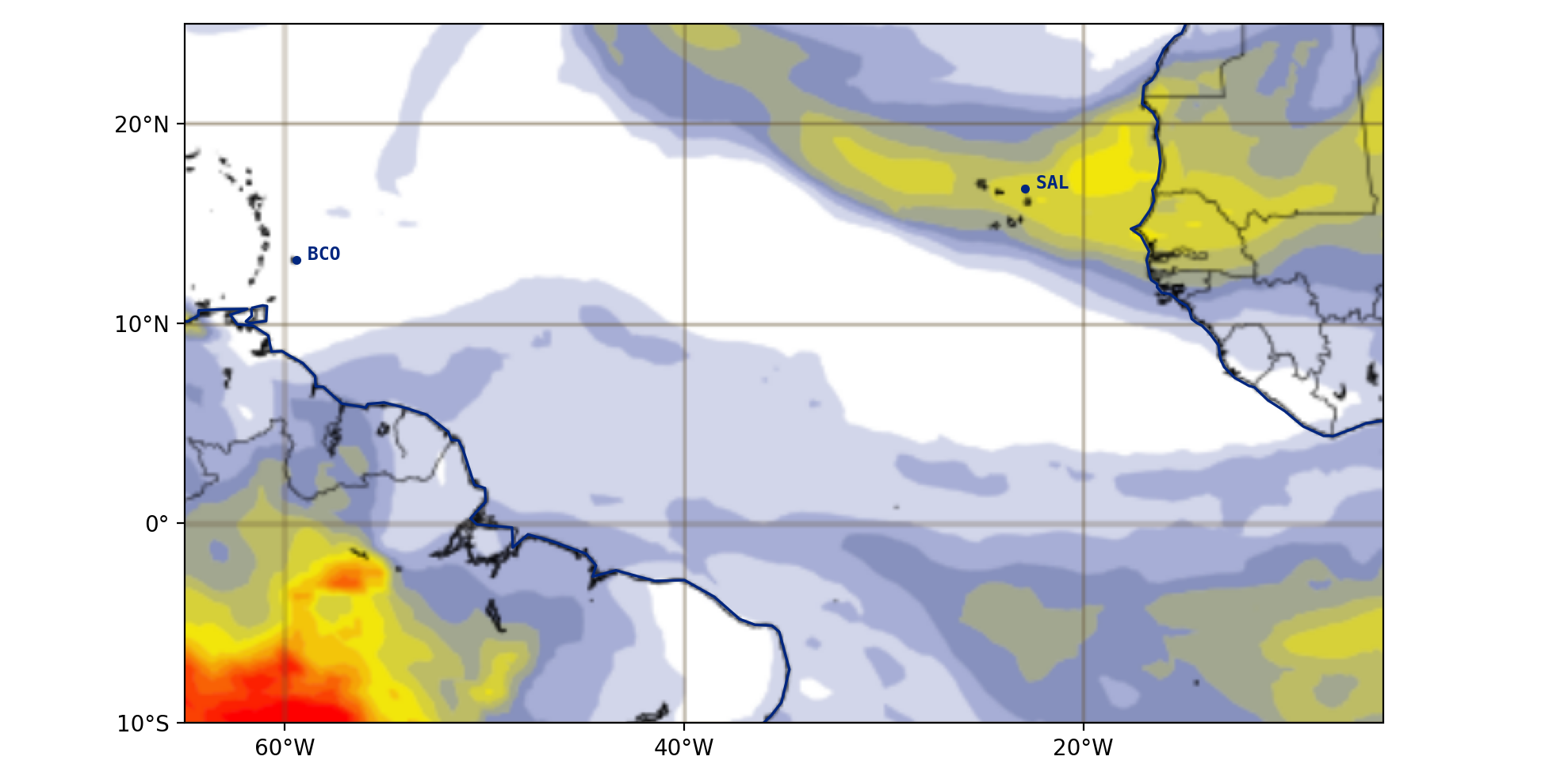Horizontal sfc. wind conv. & Prob. precip. forecast
