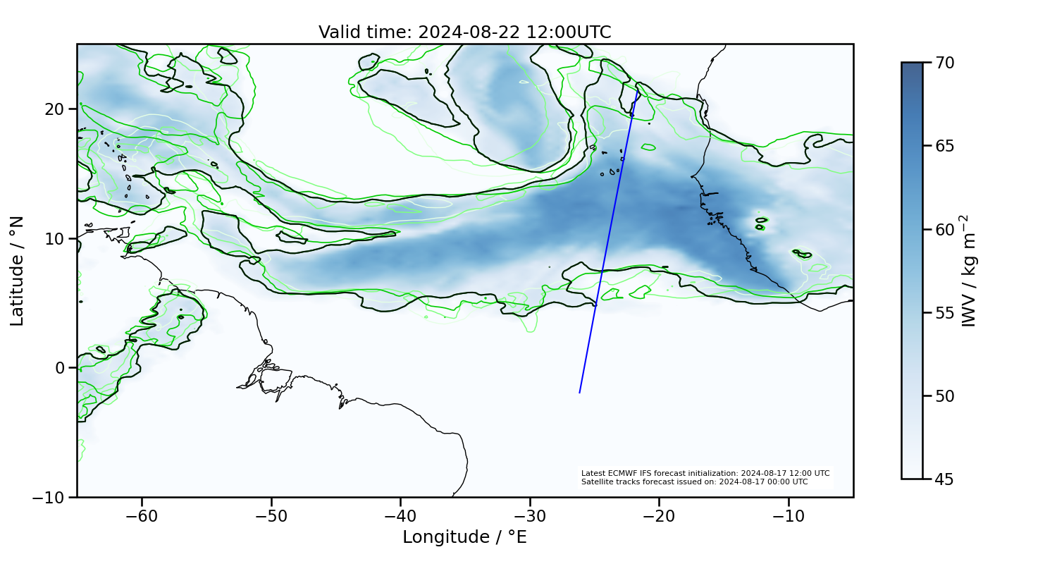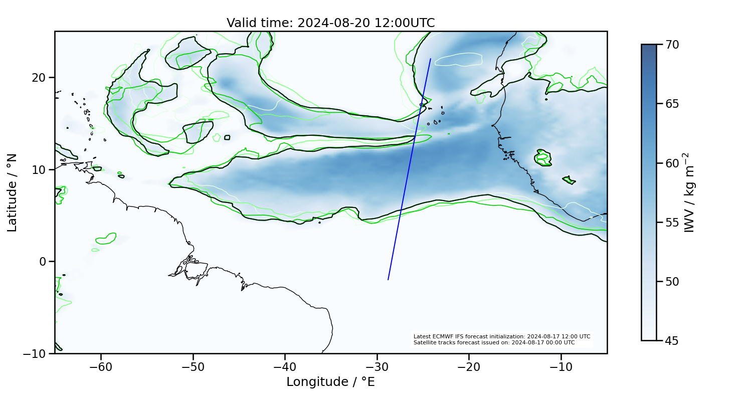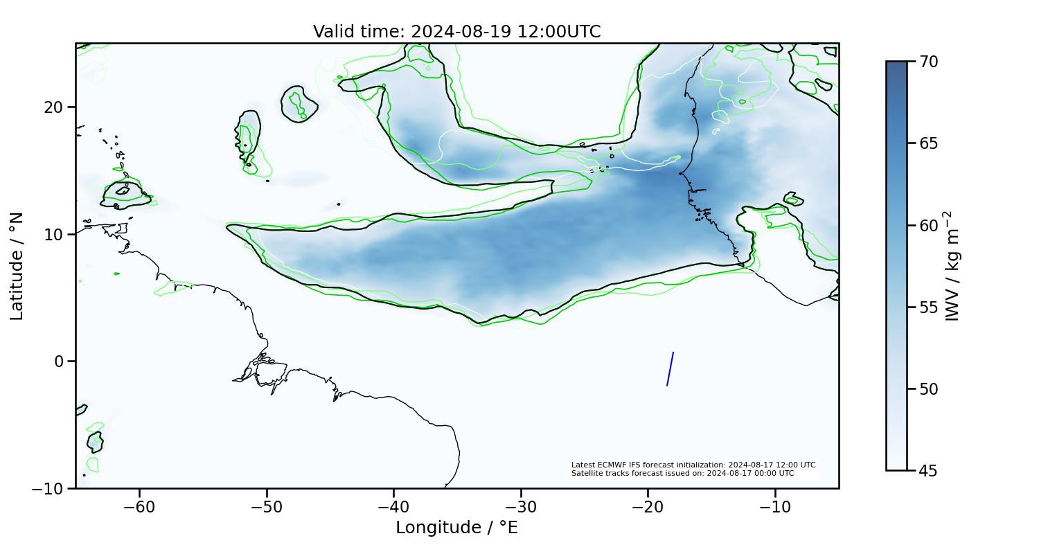 The width of the ITCZ (estimated based on moist margins) is narrower according to the latest forecast