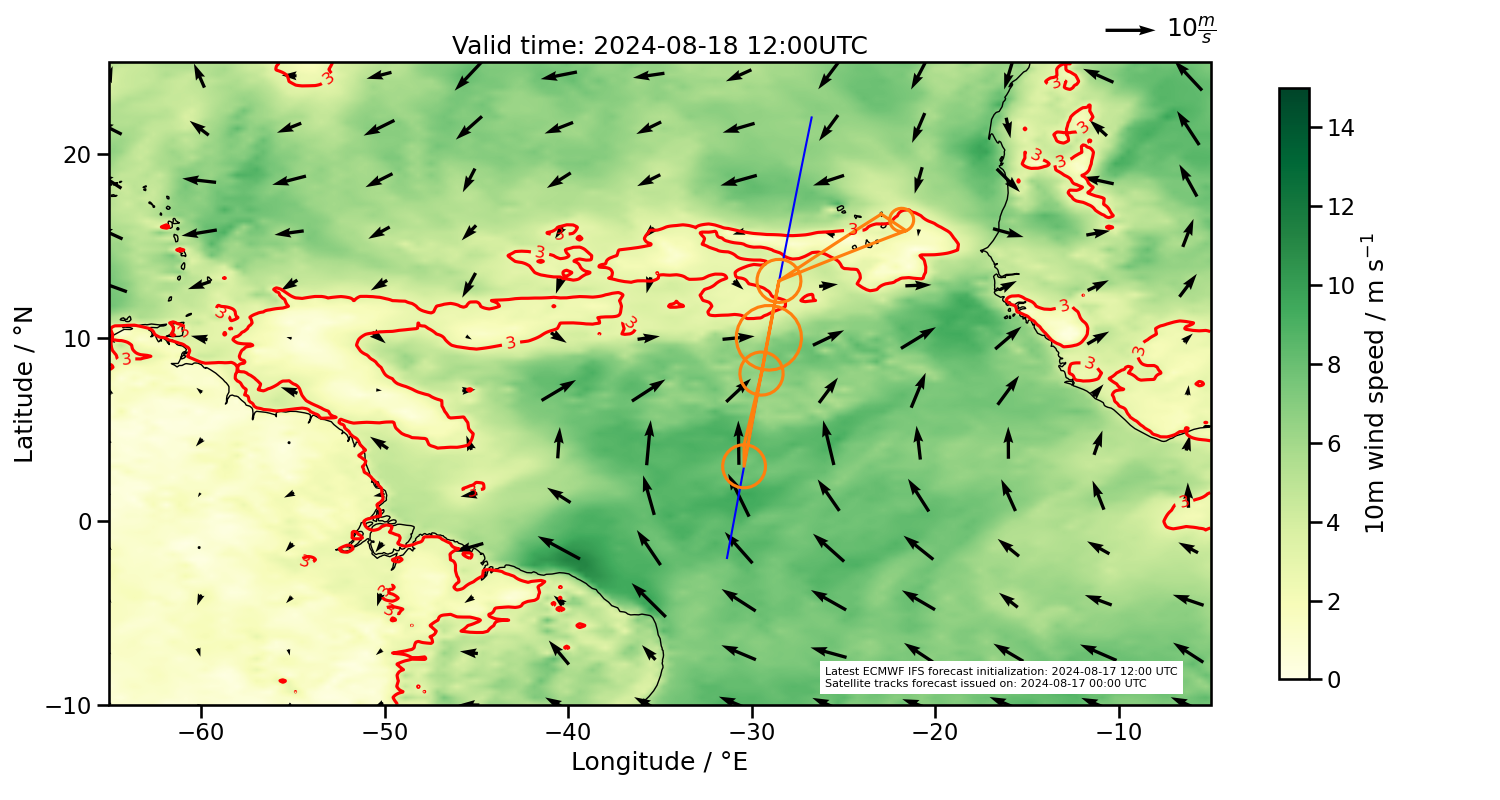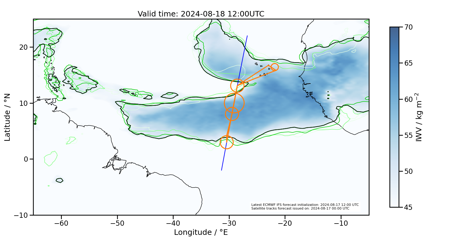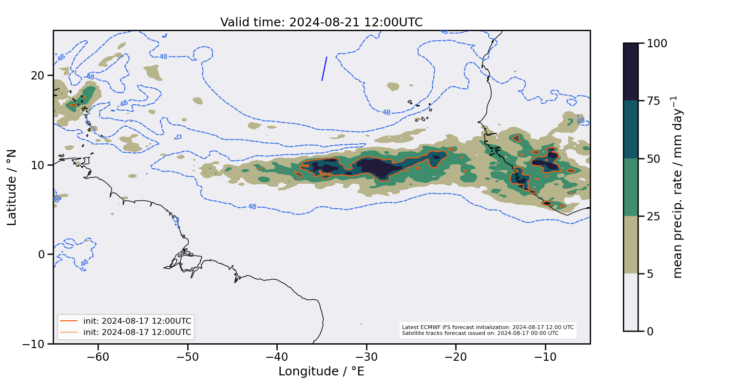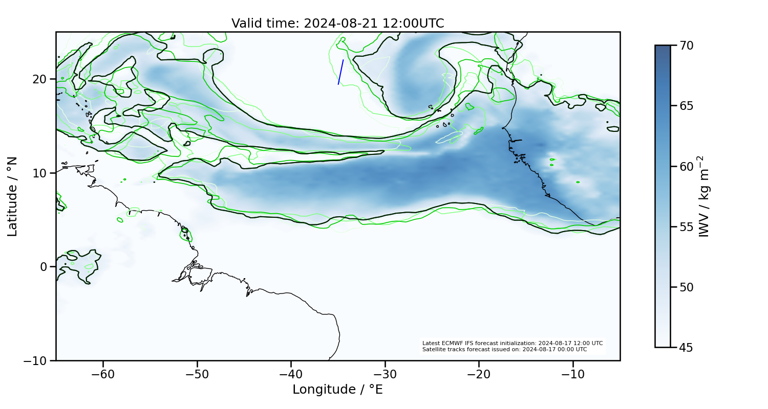 The width of the ITCZ (estimated based on moist margins) is narrower according to the latest forecast